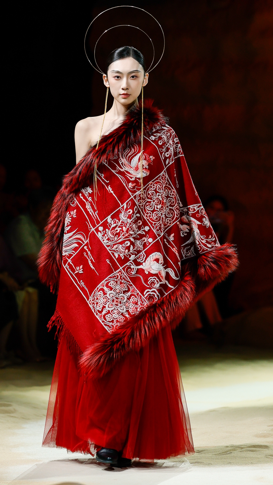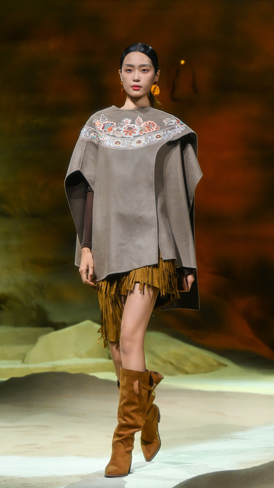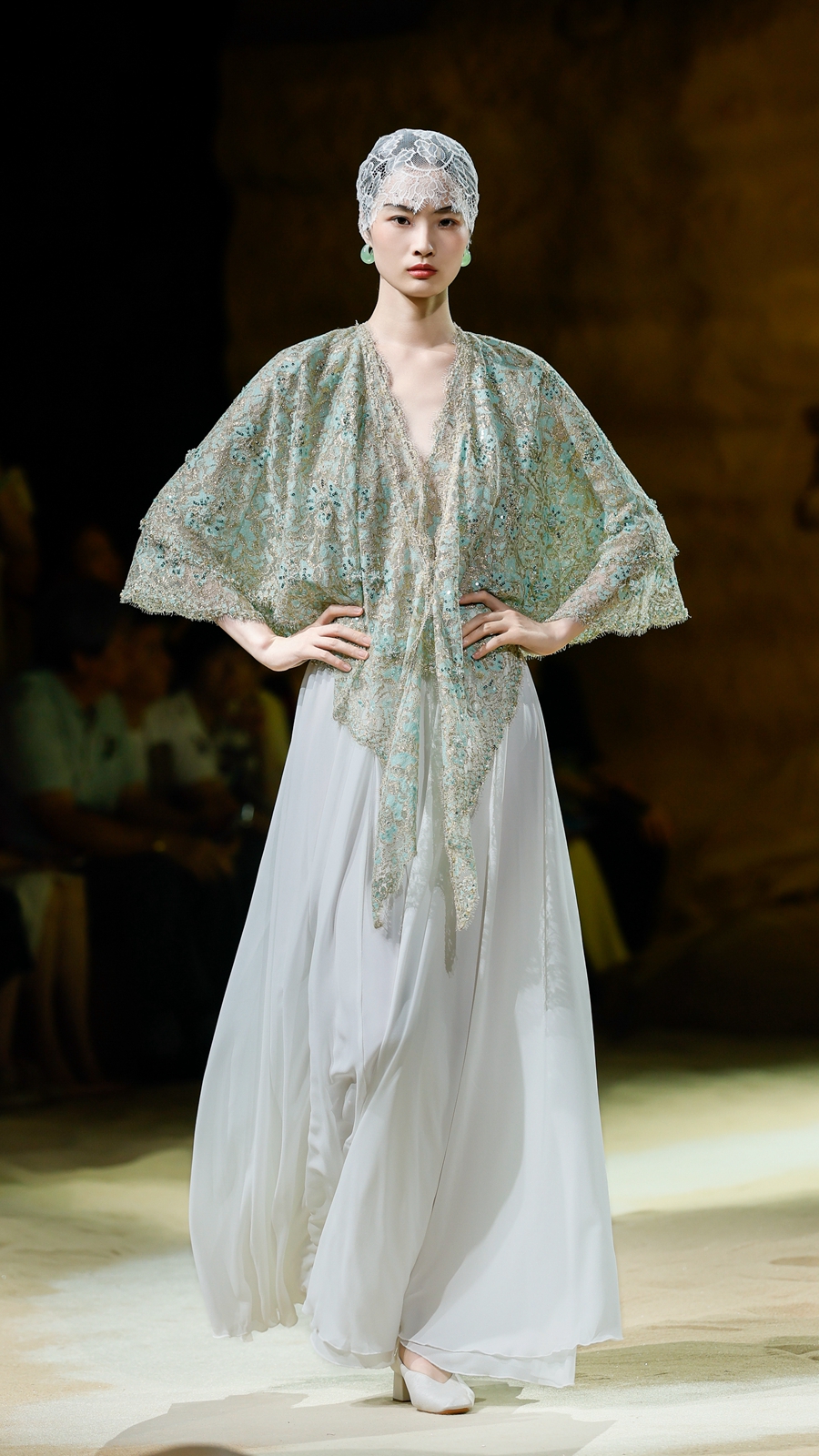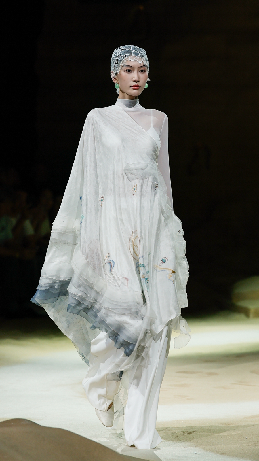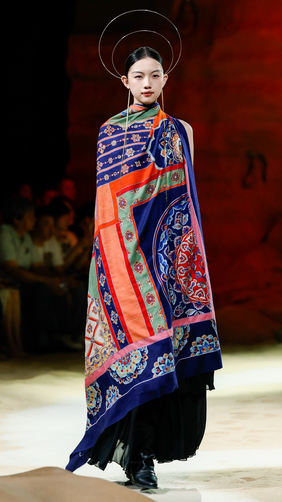 嫵WOO 2026春夏典藏大秀在上海文化地标「上生·新所」拉开帷幕,于百年建筑中辟出一方大漠梵境,穿过沙丘,别有洞天,一窟一龛,壁映千佛。秀场空间通过艺术置景与光影设计,致敬敦煌石窟艺术,旨在消弭时间的藩篱,将尘封的文化记忆具象化,让观者身临其境沉浸式感知体验,构建起当代语境与古老文明之间的连结。